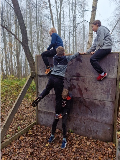 Visa klase braucām uz "Tīsu bāzi", kur bija daudz un dažādu grūtību pārvarēšanas šķēršļu. Mūs sagaidīja sacensību organizētājs un galvenais tiesnesis Elejas vidusskolas izdzīvošanas pulciņa instruktors ĒRIKS GRINEVICS un trases tiesneši – Jelgavas 52. Zemessardzes bataljona zemessargi un Elejas vidusskolas izdzīvošanas pulciņa dalībnieki.