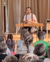16.februārī kultūrizglītības programmas “Latvijas skolas soma” ietvaros mūsu skolā viesojās aktieris un mūziķis Dzintars Lipors, kurš koncertlekcijā “Kokļu evolūcija” 1. – 3. klašu skolēnus iepazīstināja ar latviešu tautas senākā instrumenta kokles attīstību. Lekciju ar interesi klausījās arī folkloras kopas “Sudrabiņš” dalībnieki, kas koncertos muzicē ar Dzintara vectēva Kārļa Lipora darinātajām etnogrāfiskajām koklēm.