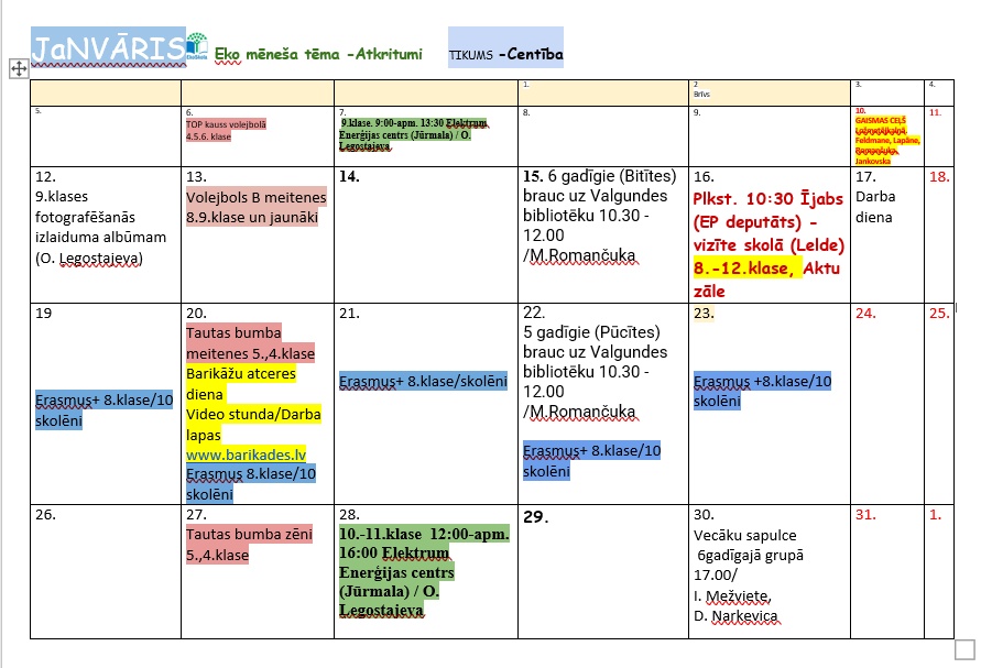 Pasākumi janvārī